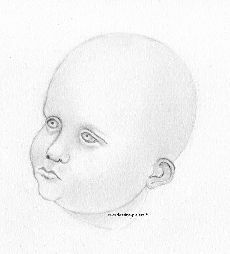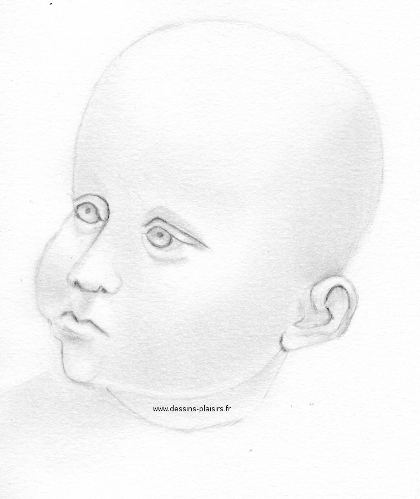 Comme vous pouvez le constater, j’ai peut être un peu trop marqué certains traits. Par contre, on ressent bien la forme de la tête, assez caractéristique chez un bébé.